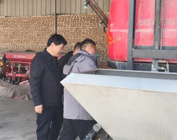 在农机专业合作社中,农业机械发展中心的专业技术人员与农机手面对面交流。针对春耕生产中常用的拖拉机、旋耕机、播种机等重点机具,技术人员逐台进行细致检查。
