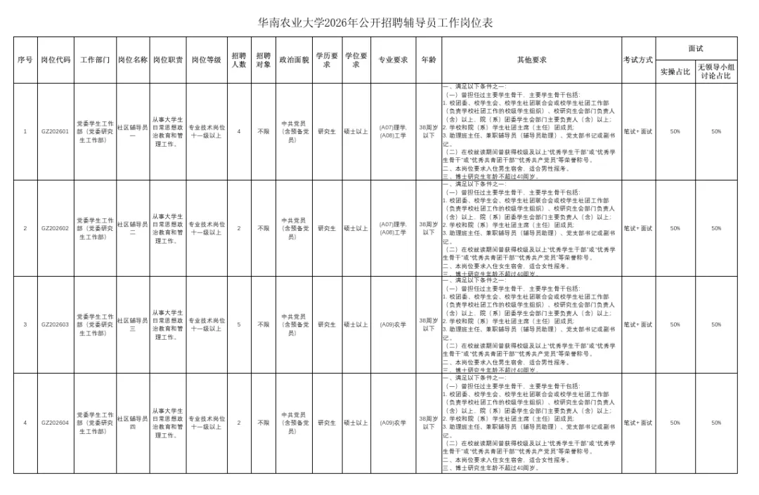 >华南农业大学2026年公开招聘辅导员公告