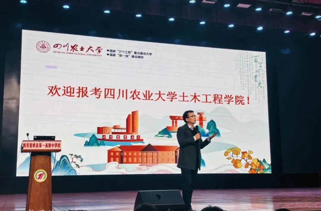 随后,宣讲活动进入核心环节。四川农业大学土木工程学院的专家们通过精心准备的学校介绍视频、详实的数据图表和生动的案例,全面展示了四川农业大学作为国家“双一流”建设高校的宏阔气象与卓越成就。