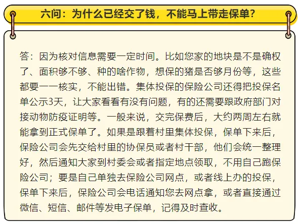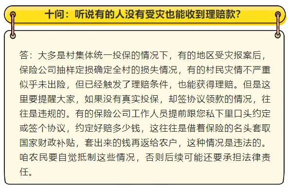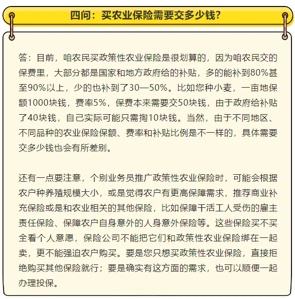 农业保险是国家保障粮食安全、稳定农业生产的重要政策工具。这些年,咱们搞适度规模种养的乡亲越来越多,对农业保险的需求也越来越强烈。为了把大家关心的问题讲明白,帮乡亲们吃透这项政策、用好这项福利,我们联合财政部和金融监管总局有关司局一起整理了这份十问十答的宣传材料。现在发给大家,希望对乡亲们有所帮助。
