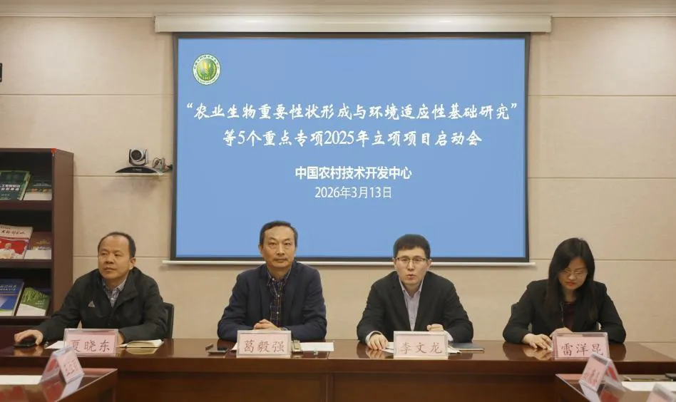 为深入贯彻落实新形势下国家重点研发计划管理有关要求,扎实推进项目顺利实施,2026年3月13日,中国农村技术开发中心(以下简称“农村中心”)以线上线下结合的方式统一召开了“农业生物重要性状形成与环境适应性基础研究”等5个重点专项2025年立项目启动会。农业农村部科学技术司重点项目管理处负责同志,农村中心领导及重点专项管理团队相关同志和财务专家参加会议。项目(课题)负责人、项目承担单位科研和财务管理部门负责人等通过线上方式参加会议。 会议对项目组织实施提出明确要求,一是要把握政策要求,创新组织实施和管理服务模式,坚持从严监管,加强项目关键节点和经费管理,确保项目目标如期实现;二是要坚持产业导向,把解决关键科学问题、突破核心关键技术、产生重大经济效益等作为主要目标,将科研工作与国家目标、现实需求结合起来,解决真问题和真解决问题;三是要压实各方责任,项目承担单位和项目负责人分别履行好法人责任、“第一责任人”职责,加强学风建设,推动各方形成合力,共同保障项目高质量实施。财务专家围绕项目经费规范使用作了系统培训,并介绍了经费智能监管的创新实践。本次启动会帮助各项目团队准确把握新形势下国家重点研发计划的管理要求,切实推动项目有序实施,保障专项总体目标和各项任务顺利完成。