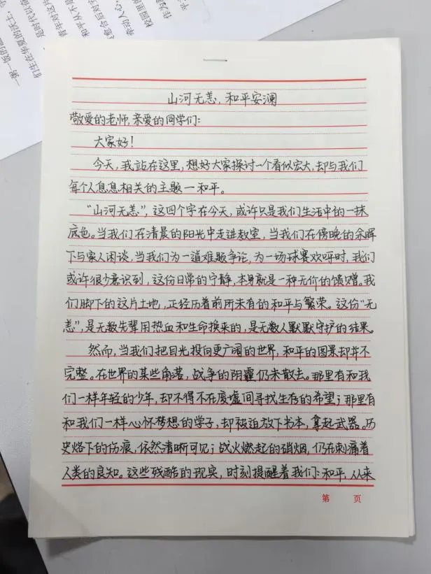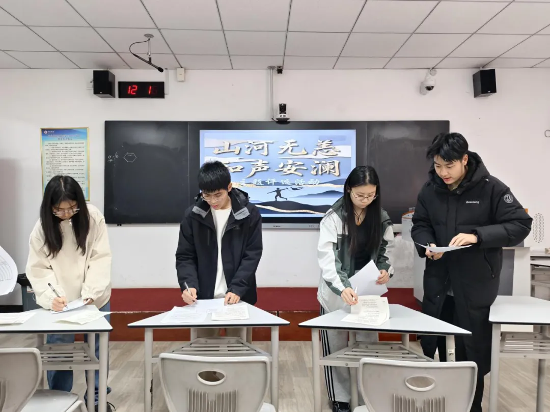 本次征稿活动紧扣“山河无恙,和声安澜”核心主题,聚焦家国安宁、岁月静好的美好愿景,鼓励同学们结合自身的理解感悟、生活体验与青春思考,围绕家国情怀、时代担当、青春使命等方向进行创作,活动现场,评审团根据稿件评审要求和标准,从思想内涵、文笔文采等多个维度进行打分评级。
