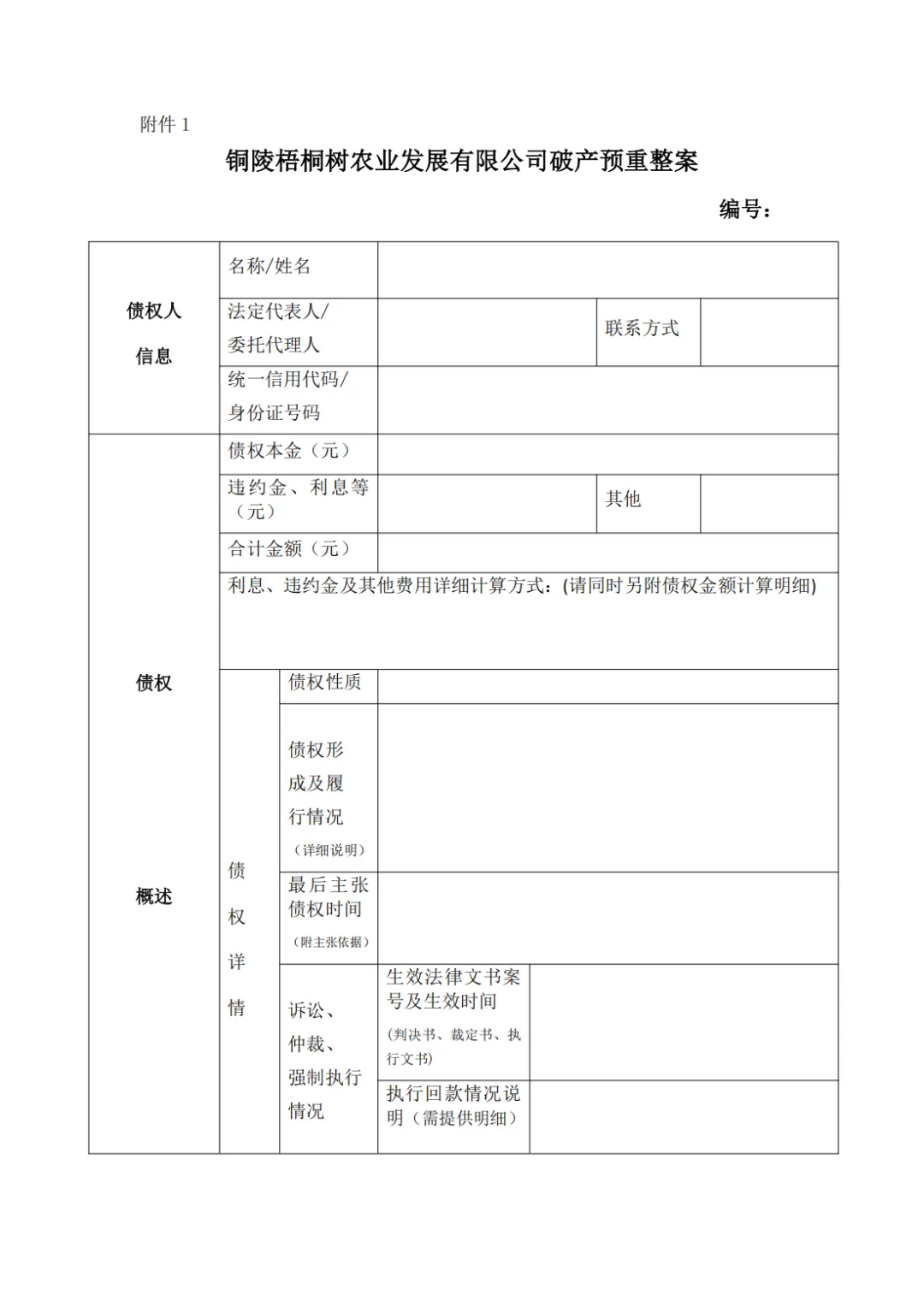 为保障铜陵梧桐树农业发展有限公司(以下称“债务人”)债权申报登记工作合法、有序进行,根据《企业破产法》之规定,结合债务人的实际情况,就本案债权申报相关事宜告知如下: