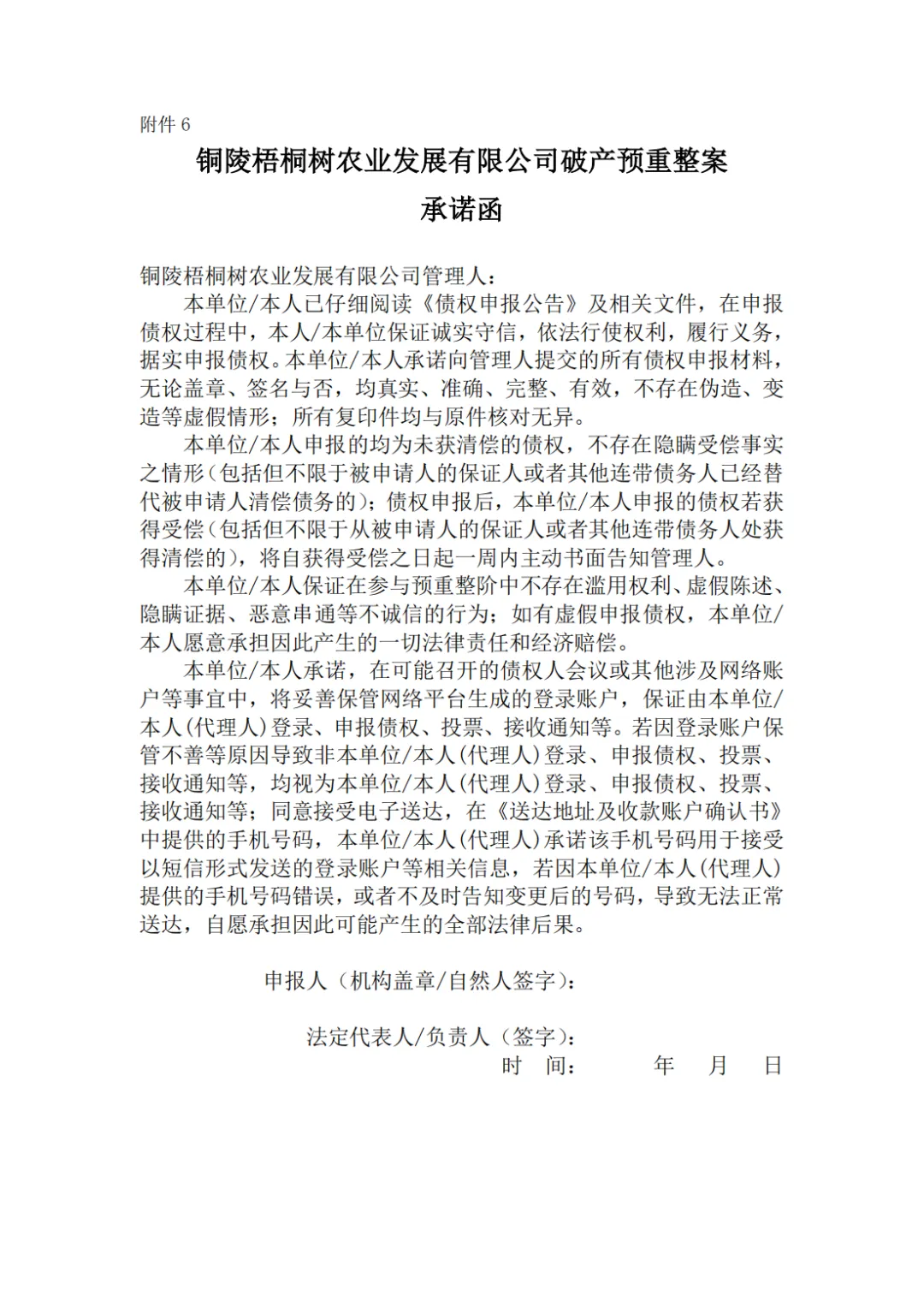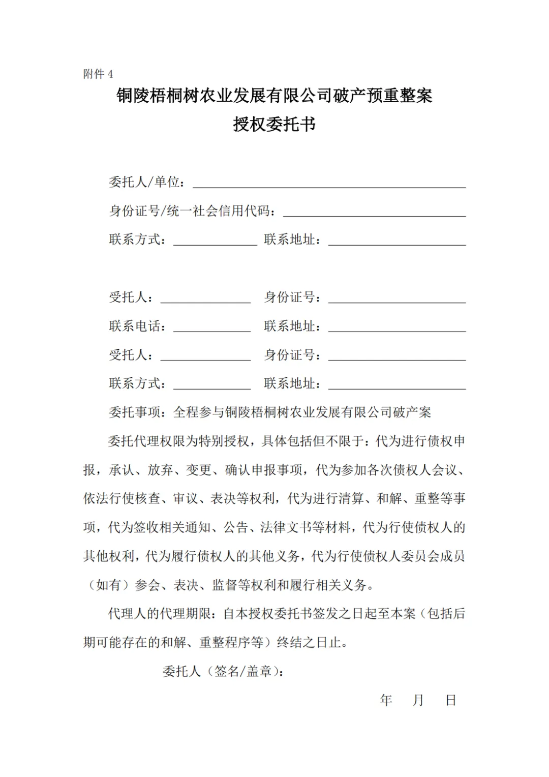 铜陵梧桐树农业发展有限公司临时管理人