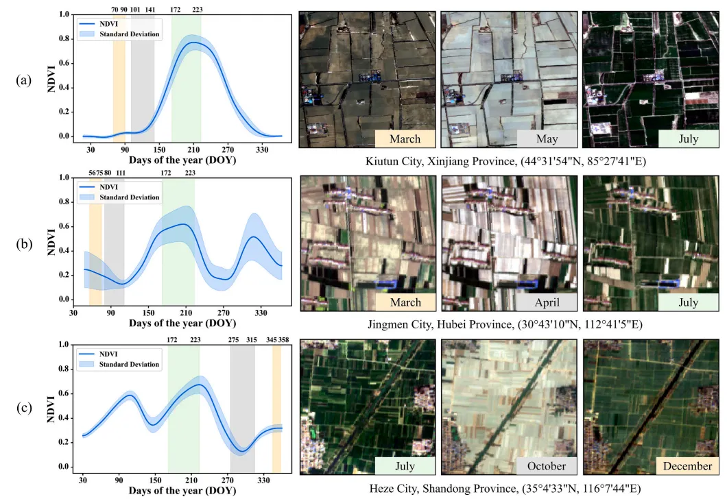 图 11.典型农业区作物分布与塑料大棚农田格局空间对比。