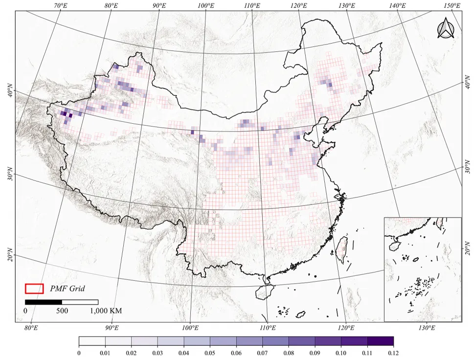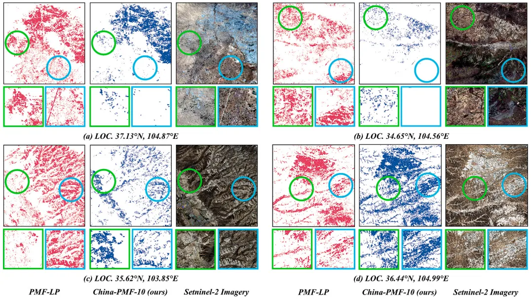 图 12.黄土高原区域 China-PMF-10 数据集与 PMF-LP 数据集空间对比。