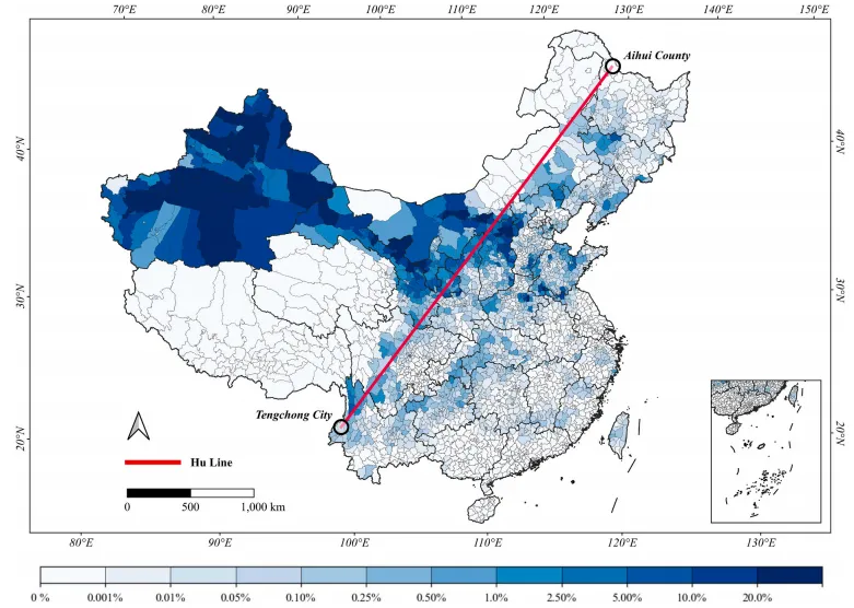 图 8.基于二元信息熵得到的全国尺度空间不确定性分布图。