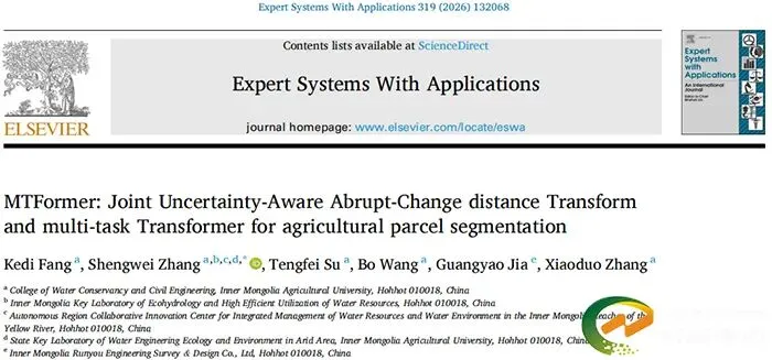 发表于《Expert Systems with Applications》的研究,题为“MTFormer: Joint Uncertainty-Aware Abrupt-Change distance Transform and multi-task Transformer for agricultural parcel segmentation”,该研究系统剖析了现有深度学习方法在泛化能力及边界不确定性建模方面的不足,并构建了覆盖中国7个典型农业区域的基准数据集(MR-AP),提出了一种联合不确定性突变感知距离变换与多任务Transformer的农田地块提取模型(MTFormer),采用多尺度Transformer融合模块并行捕获全局语义关联与局部特征;创新性地将不确定性突变感知距离变换取代欧式距离,将回归任务转化为可解释性的软标签监督,以应对标注噪声与模糊边界;同时引入多任务联合深度监督回调策略协同优化掩膜、边界与回归任务。