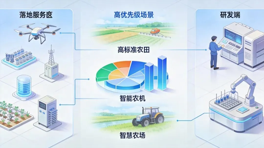 - 按场景优先级分配,三大赛道占比超80%资金不是平均分配,核心向三大高优先级场景集中:高标准农田智慧化改造占比35%、智能农机与涉农机器人推广占比30%、数字农业与智慧农场建设占比15%,这三大赛道,是今年红利最集中的核心阵地。