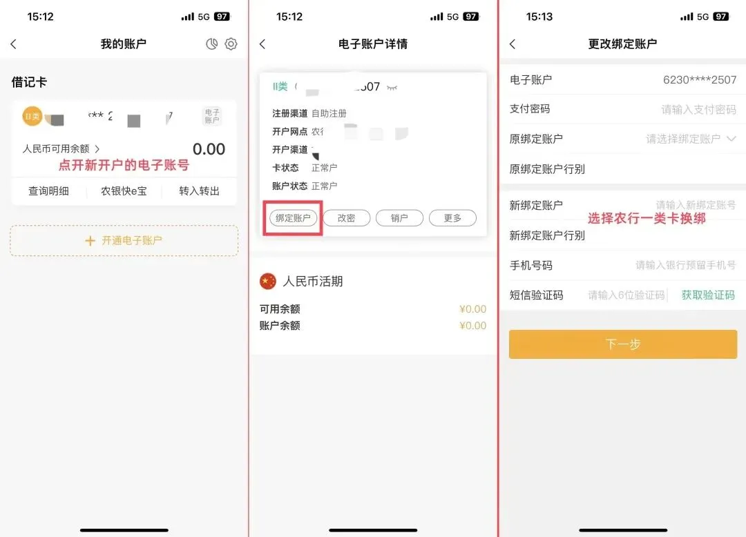 开二类电子账户,绑定他行银行卡(中农工建交和邮储)