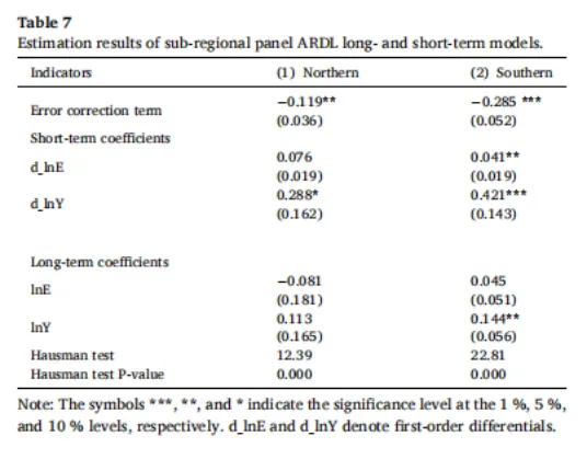 通过异质性面板格兰杰因果检验发现:经济质量提升是排放变化的驱动因素,反之不成立,能源消费与排放、经济质量相互驱动。空间异质性上,北方区域短期内经济质量、能源消费均正向影响排放;长期上能源消费负向影响排放,经济质量正向影响但不显著。南方区域短期和长期经济质量均显著正向影响排放,能源消费正向影响但长期不显著。