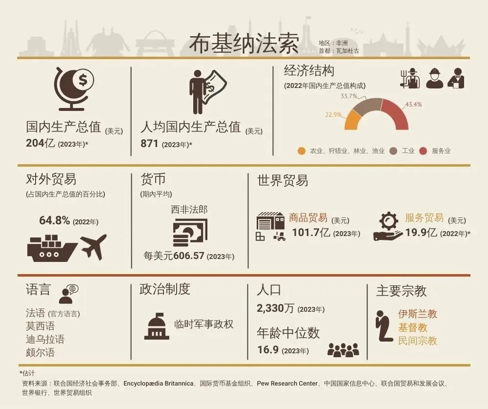 ,布基纳法索的经济结构典型地呈现“