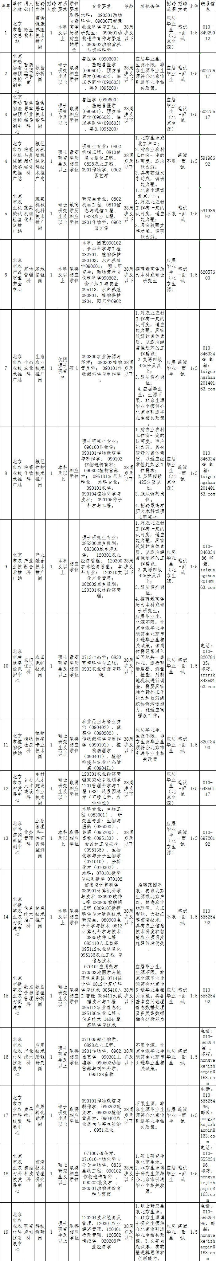 (六)本次公开招聘工作中,笔试、资格复审、面试安排等全流程信息均在“北京市农业农村局政务网站”发布,请保持关注。咨询电话详见岗位计划表中各招聘单位预留电话。