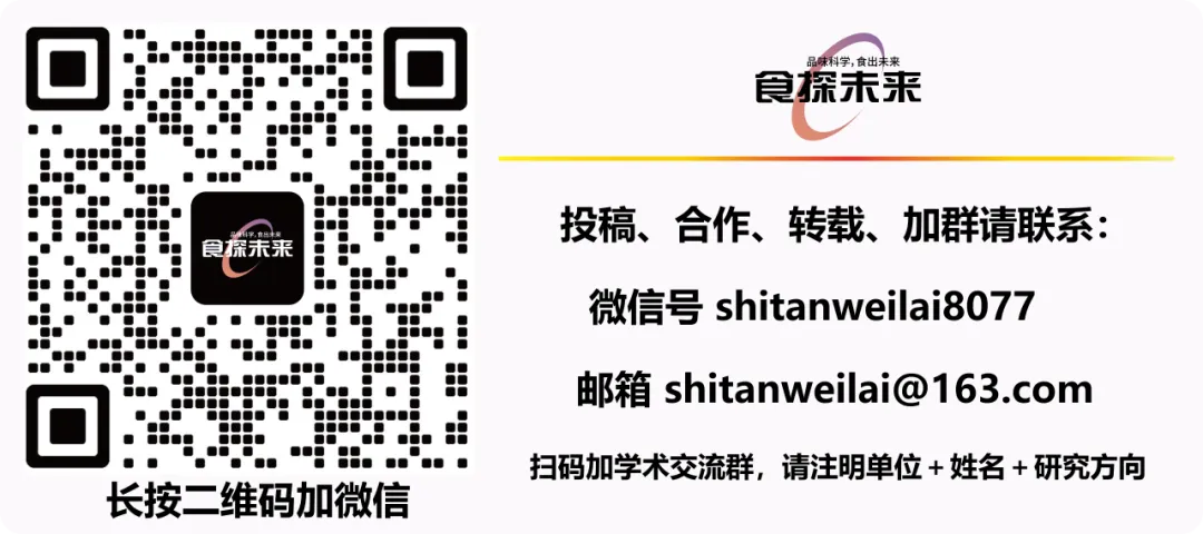 免责声明:「原创」仅代表原创编译,水平有限,仅供学术交流,本平台不主张原文的版权,如有侵权,请联系删除。文献解读或作者简历如有疏漏之处,我们深表歉意,请作者团队及时联系《食探未来》主编(微信号:shitanweilai8077),我们会在第一时间进行修改或撤稿重发,感谢您的谅解!