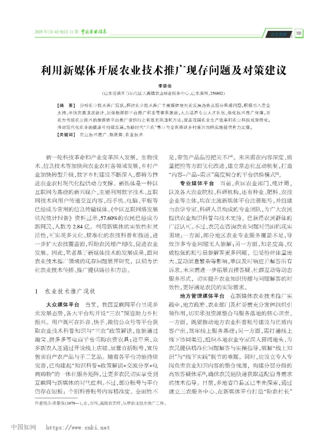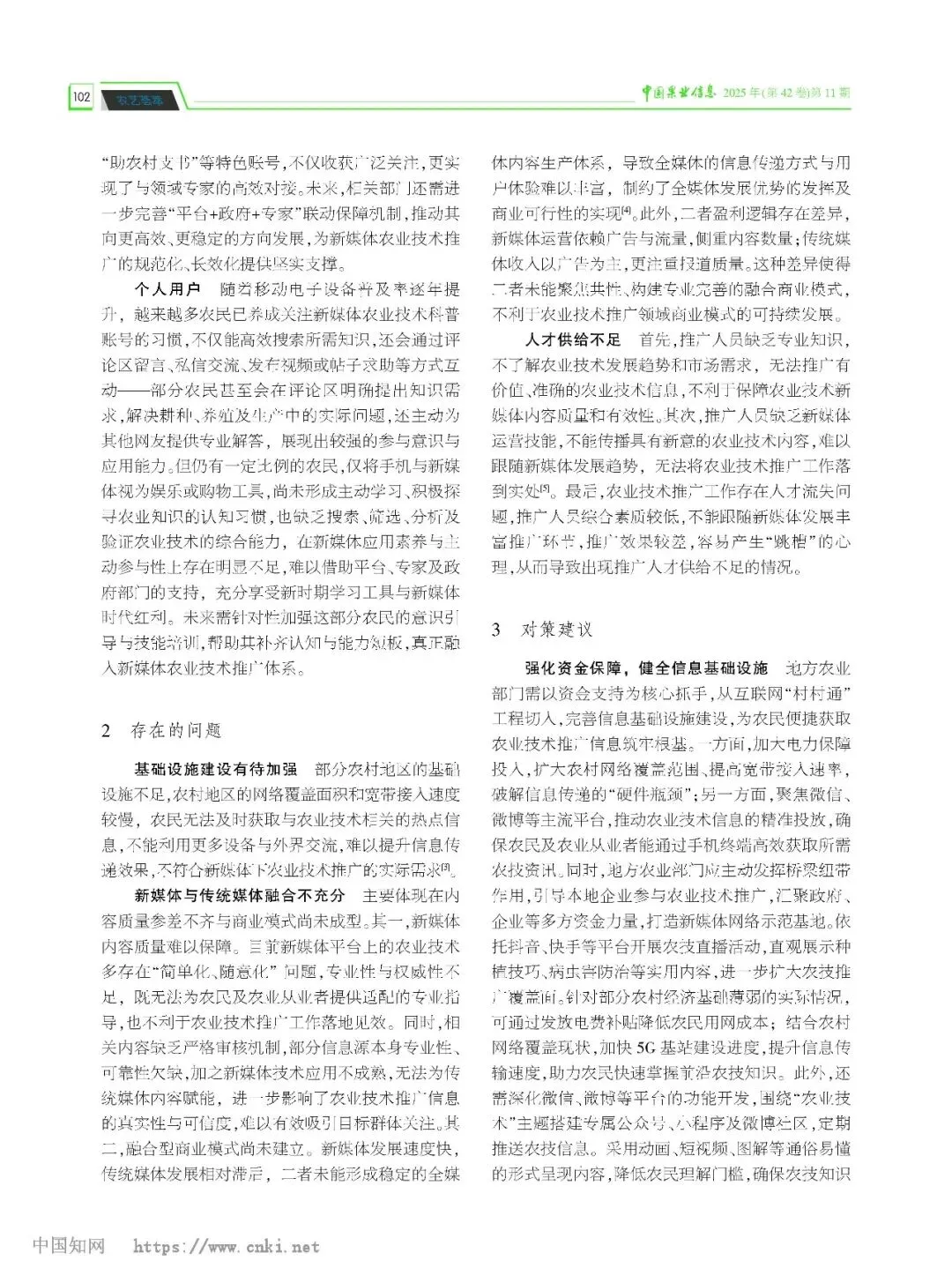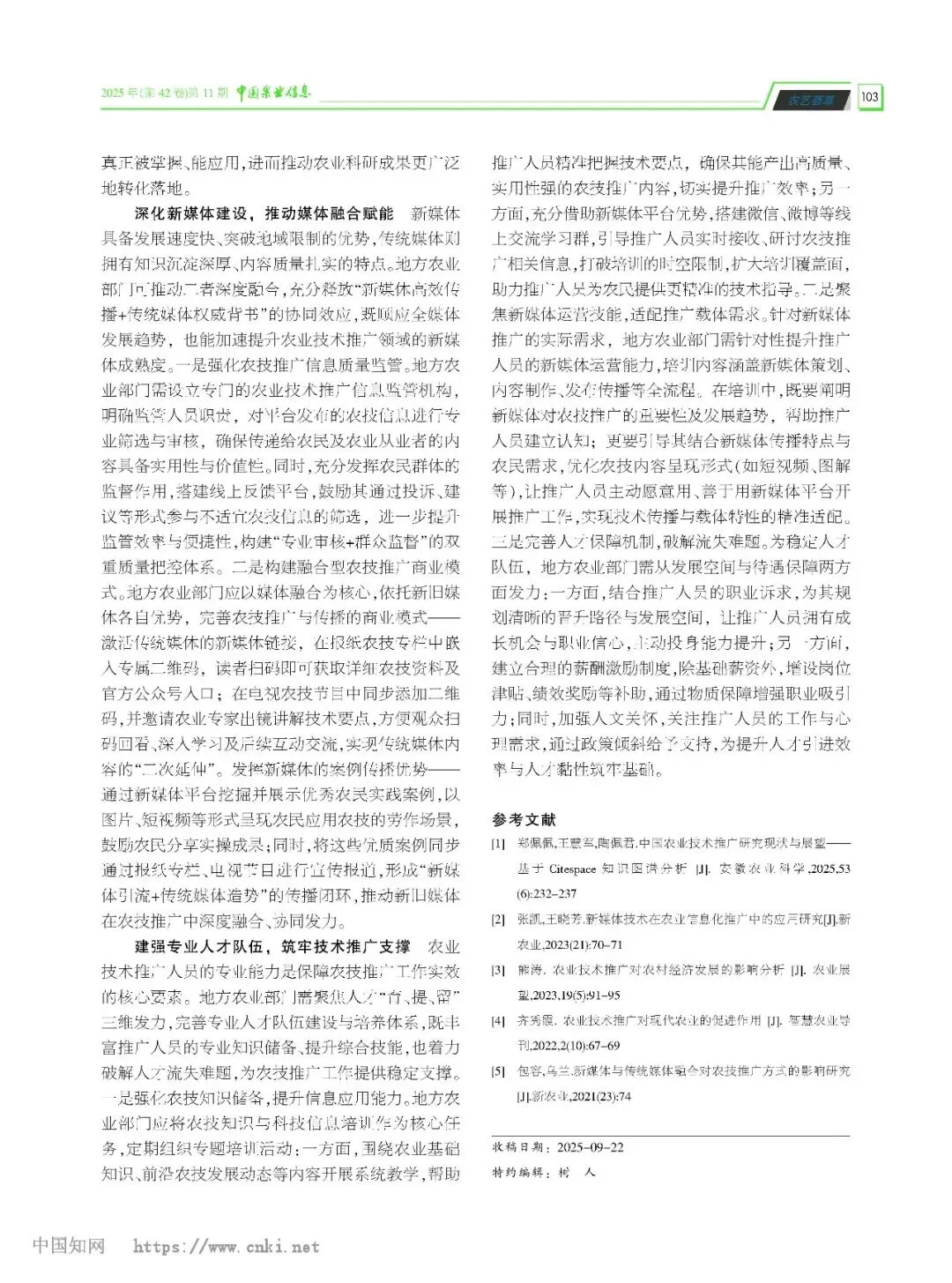 引用:李景俊.利用新媒体开展农业技术推广现存问题及对策建议[J].中国果业信息,2025,42(11):101-103.