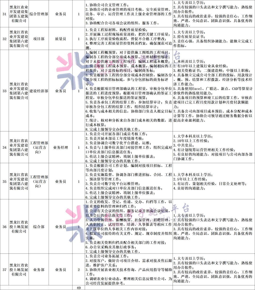 附件:黑龙江省农业投资有限公司权属企业市场化选聘岗位及要求.xlsx