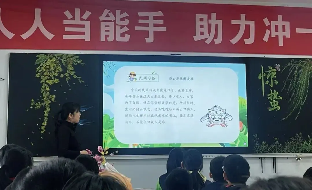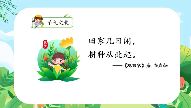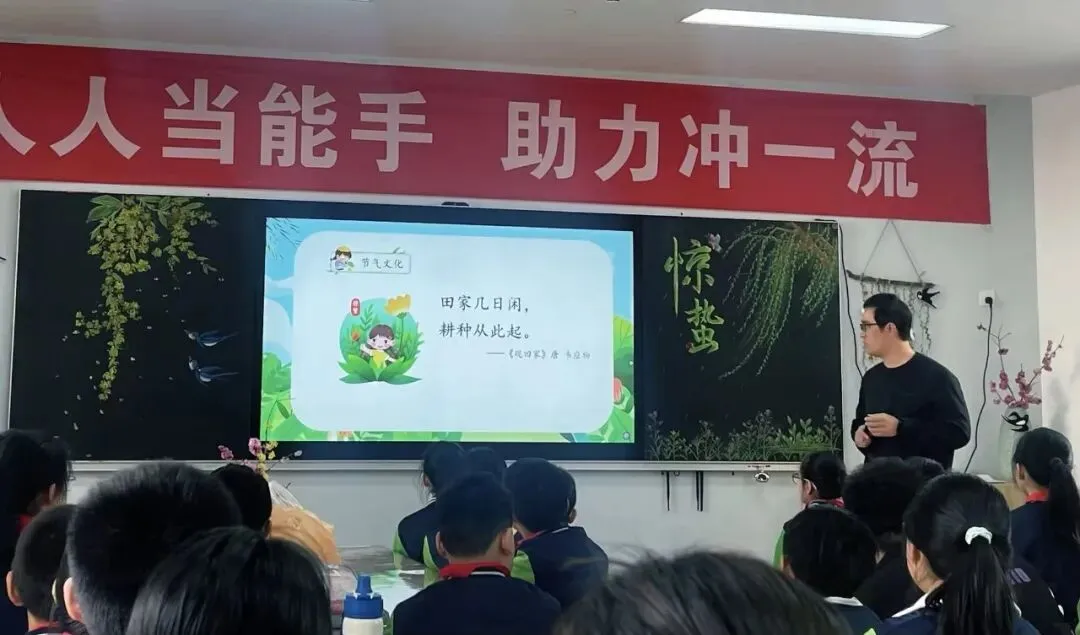 王老师还拓展了韦应物的《观田家》和有趣的惊蛰谚语,让知识的种子在心中生根发芽。