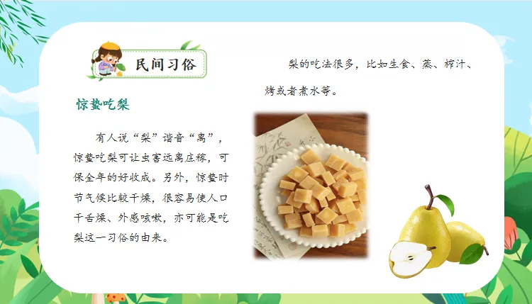 课堂伊始,王老师带领大家走进了惊蛰的世界。从节气的由来到三候的变化: