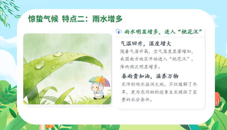 王老师为大家解读了惊蛰的气候密码:气温回升、雨水增多、乍暖还寒。提醒大家“春捂秋冻”,注意保暖。