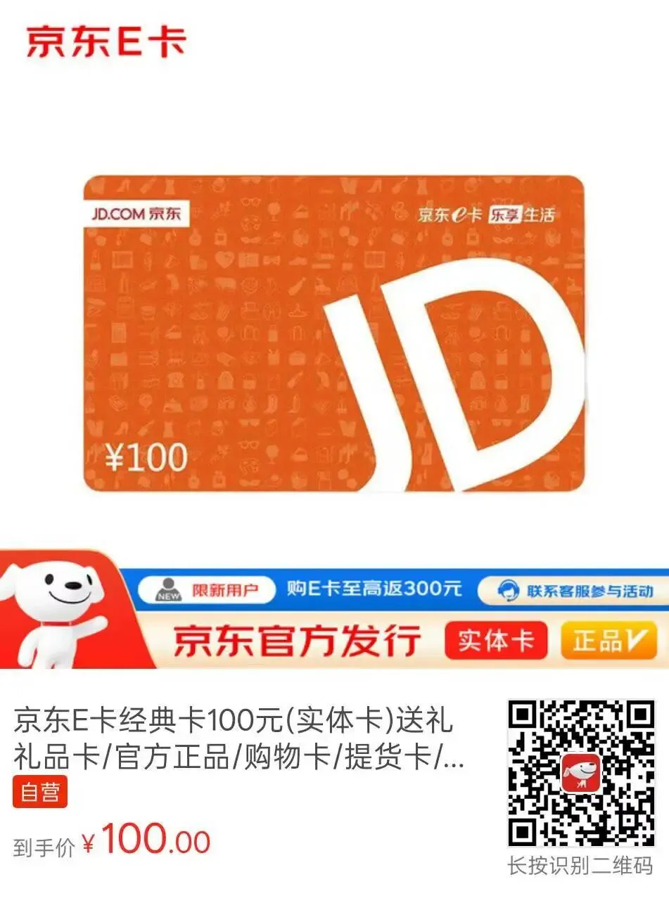 https://u.jd.com/cgz9Ldg (工行买100 实体E卡,100-8.8,识别二维码购买)
