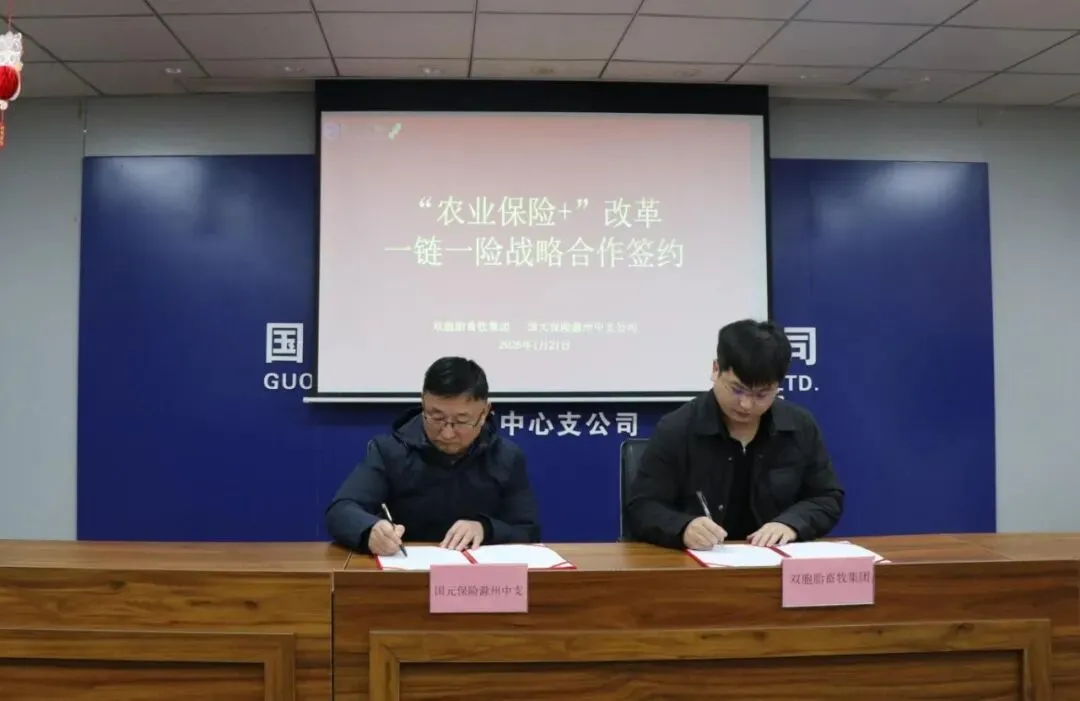 1月21日,国元保险滁州中支与全国前三养殖龙头企业—双胞胎畜牧集团正式签署“一链一险”全产业链保险战略合作协议。此次签约是落实《安徽省人民政府关于全面推进“农业保险+”改革的实施意见》的具体实践,滁州市财政局、市农业农村局、金融监督管理总局滁州监管分局均派员参加。