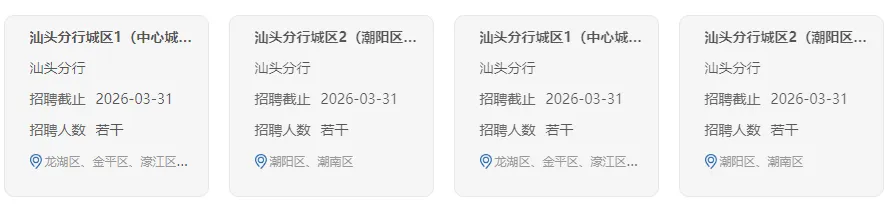 【国企】中国农业银行汕头分行招聘4岗位,3月31日前报名