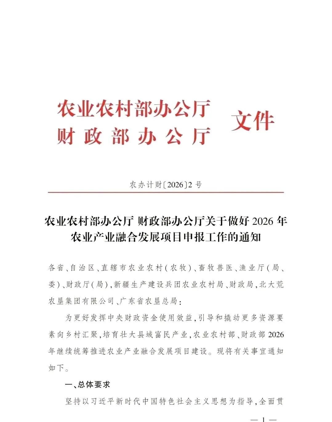农业农村部、财政部刚印发的农办计财〔2026〕2号文,也就是2026年农业产业融合发展项目申报通知,是今年开年以来乡村产业领域最重磅的政策红包,更是真金白银的国家级产业扶持,今天我用大白话给大家划透核心门道、硬门槛与绝对红线,别白忙活、别踩坑。