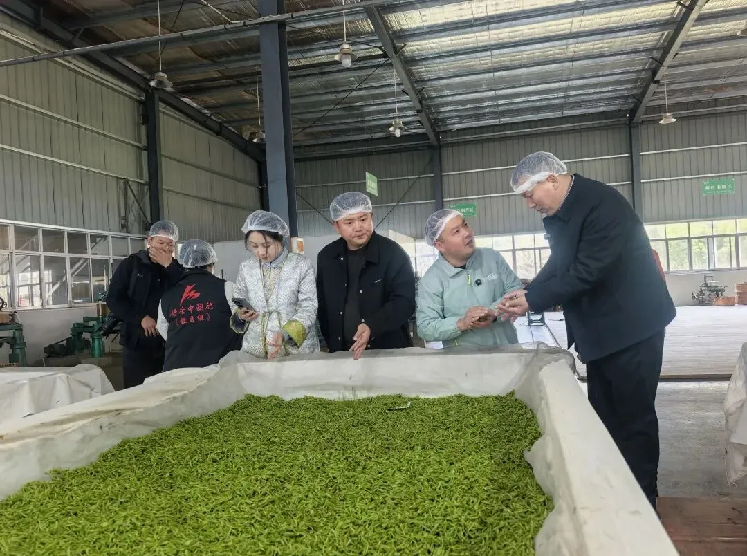 随后,章传政一行来到鼎典茗茶的生产车间,实地查看了茶叶加工流程、设备运行等情况。他仔细询问了企业在茶叶杀青、理条、干燥等关键环节的技术应用情况,对企业在传统工艺与现代技术融合方面所做的探索表示肯定,并就进一步提升产品品质、优化加工工艺提出了专业建议。