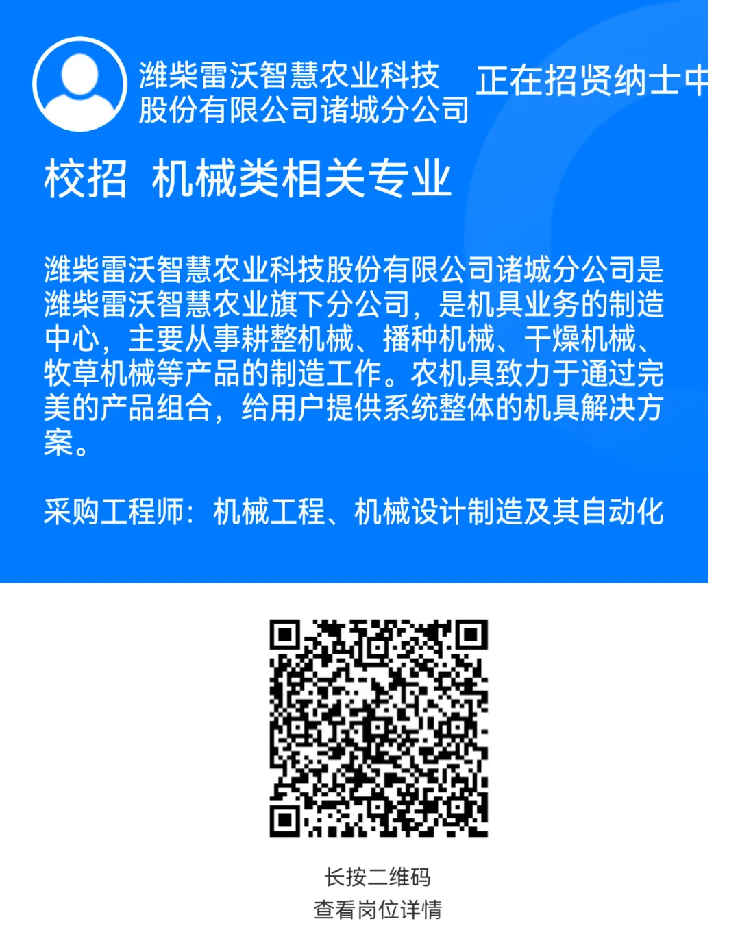 潍柴雷沃智慧农业科技股份有限公司诸城分公司是潍柴雷沃智慧农业旗下分公司,是机具业务的制造中心,主要从事耕整机械、播种机械、干燥机械、牧草机械等产品的制造工作。农机具致力于通过完美的产品组合,给用户提供系统整体的机具解决方案。