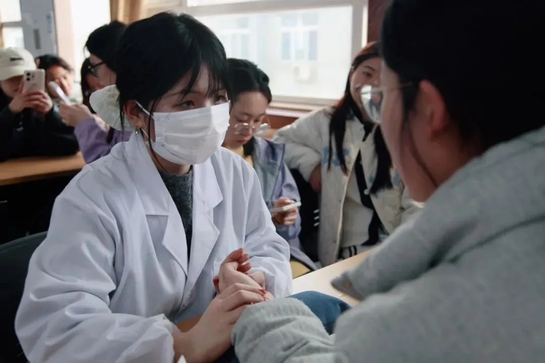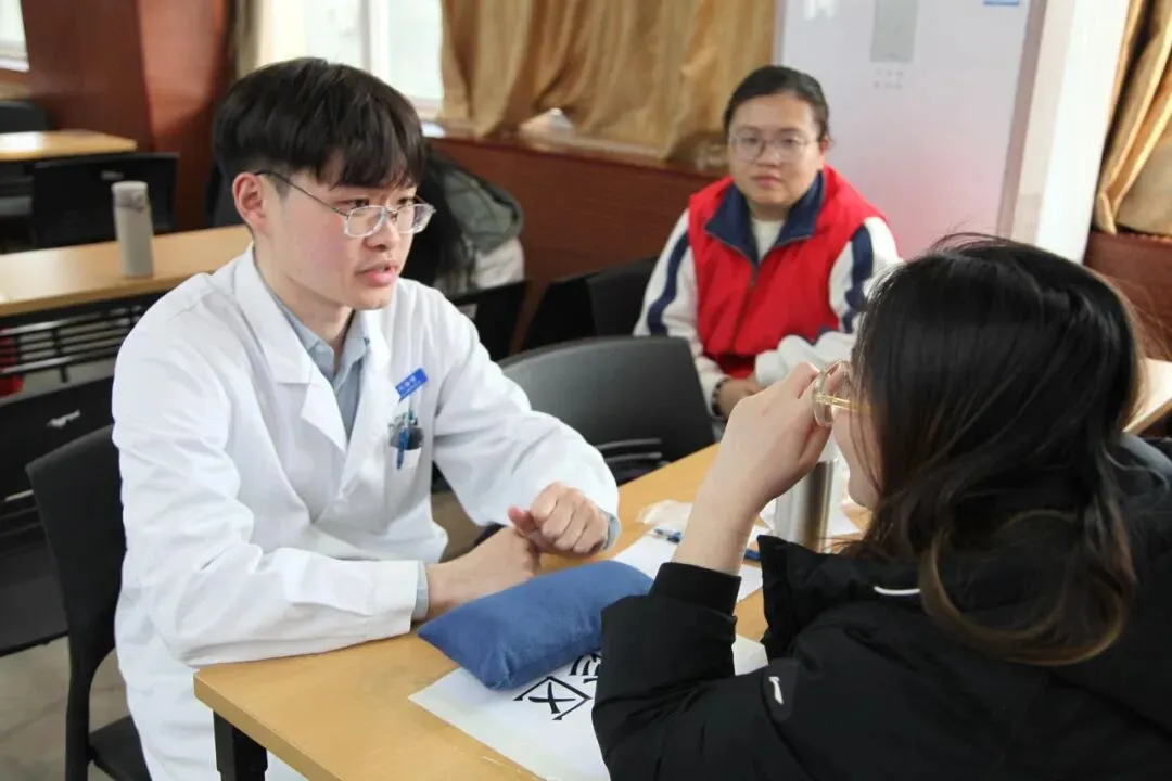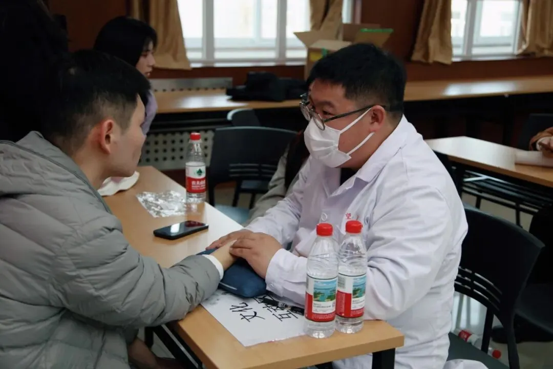 宣讲结束后,我院志愿者开展了脉诊及常见病咨询服务,吸引了大批农科院的同学前来问诊,活动现场热闹非凡,平均每位志愿者同学接诊20余人。