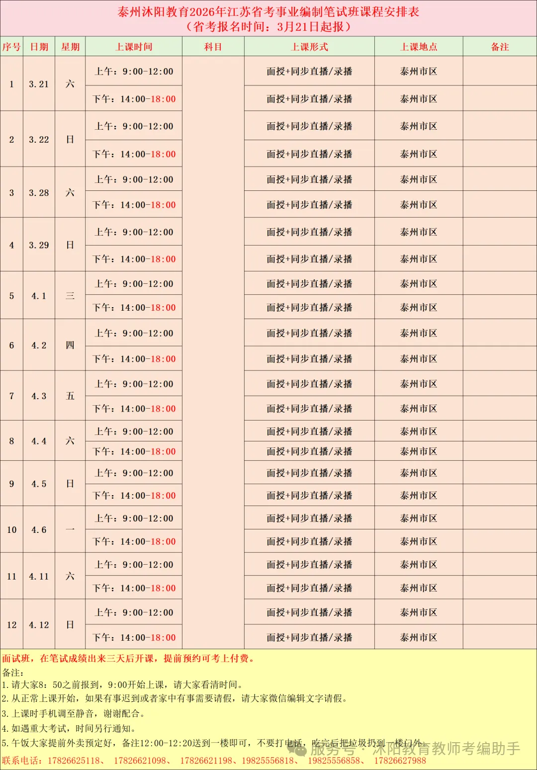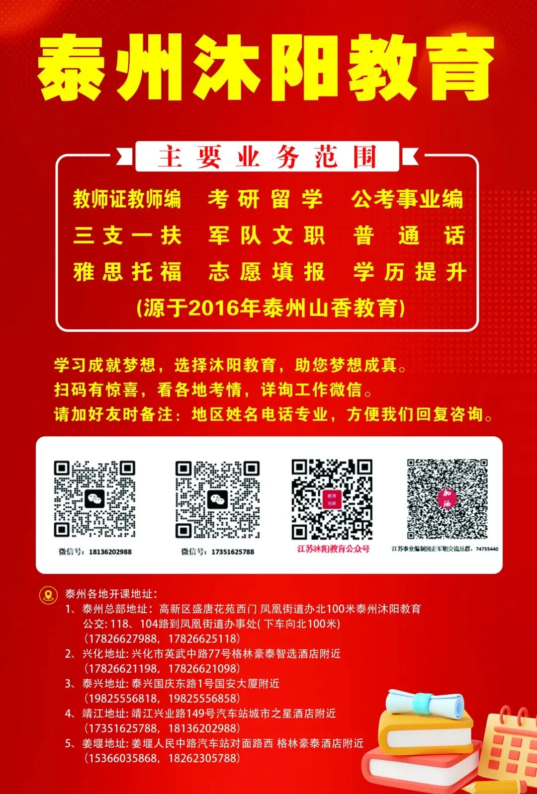 沐阳教育(原泰州山香)报名热线及微信