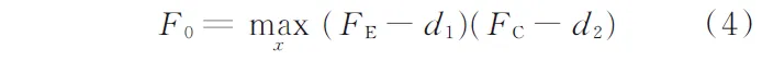 本文将配电网经济性、恢复力作为两个博弈主体,并定义FE和FC分别为经济性和恢复力的子目标函数。从谈判者FE的角度出发,考虑到移动储能在配电网常态运行下的经济性一般为负,d1=FE(max x)即为谈判过程中经济性的下限值;而从FC的角度出发,d2=0即为谈判过程中恢复力的下限值。因此将谈判破裂点(d1,d2)的值取目标函数FE和FC的最小值,即(d1,d2)=(-4.527×106,0),进而得到台风气候下配电网恢复力、经济性的纳什谈判博弈目标函数为: