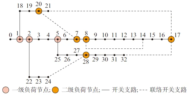 图3 IEEE 33 节点配电系统拓扑