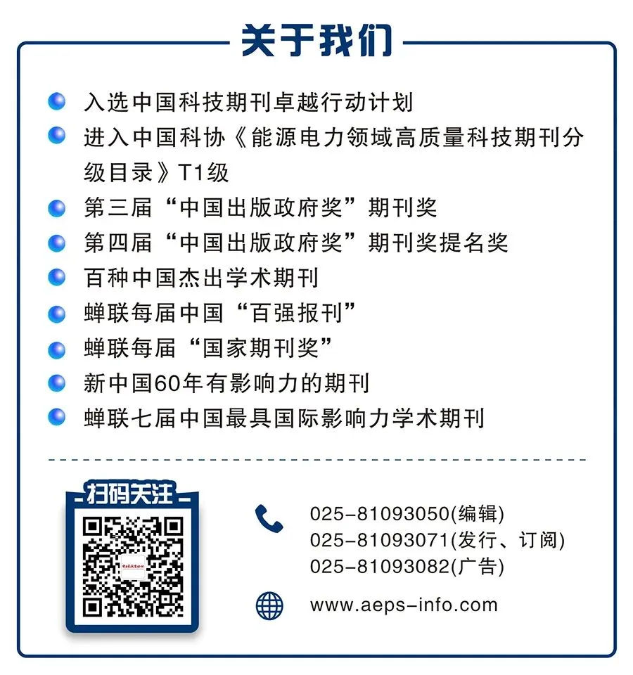 郑重声明:根据国家版权局相关规定,纸媒、网站、微博、微信公众号转载、摘编本微信作品,需包含本微信名称、二维码等关键信息,并在文首注明《电力系统自动化》原创。个人请按本微信原文转发、分享。