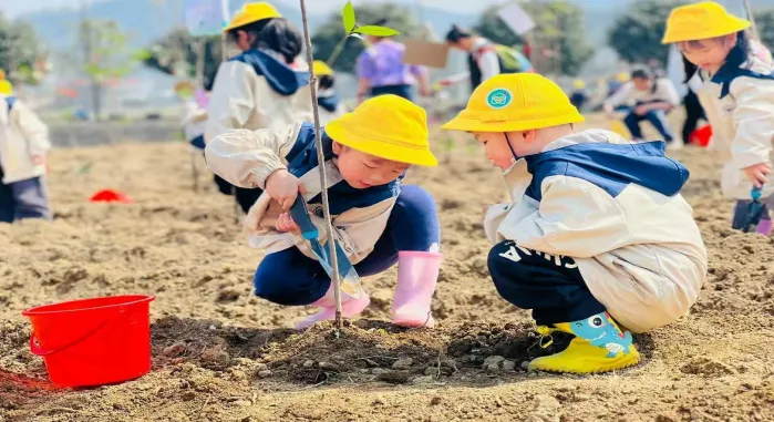春风轻柔,绿意正浓,这是大自然发出的春日邀约,让小朋友亲自挖坑、栽树、填土、浇水,掌握基本的植树技能,感受生命成长和自然的魅力。