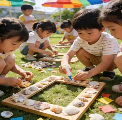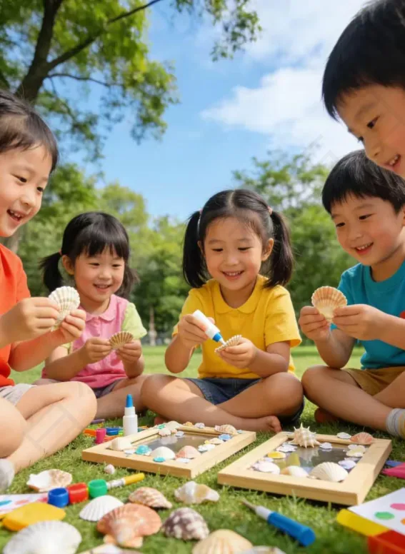 一个个相框定格温暖的时光。以贝为饰,孩子们精心挑选形态各异的贝壳,搭配色彩、拼接构图,用心粘贴,装点美好;以爱为框,珍藏回忆。
