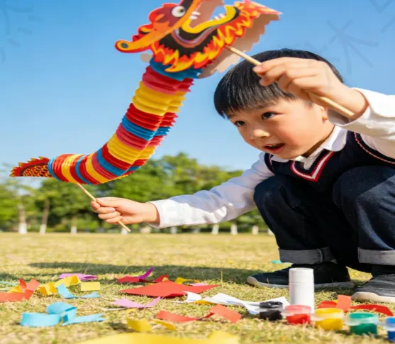 DIY趣味拉花舞龙活动,将传统民俗与手工创作完美结合。孩子们亲手制作色彩鲜艳的拉花龙身,拼接、装饰、组装属于自己的小小舞龙,在动手过程中锻炼精细动作、审美能力与合作意识。手持灵动的拉花龙,孩子们伴着欢乐节奏摇摆舞动,体验非遗舞龙的热闹与趣味,感受中华传统民俗文化的喜庆氛围。一拉一动尽显童真,一舞一乐传承文化,让孩子们在创作与舞动中收获快乐、增强自信,在欢声笑语里感受传统文化的独特魅力。