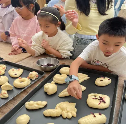 以面点烘焙、美食手作为核心,让幼儿亲手体验面包、披萨的制作过程。从揉面、塑形、铺料,到装饰、烘烤,孩子们在动手实践中感受食材的奇妙变化,体验从面团到美味点心的完整过程。在揉一揉、压一压、烤一烤的乐趣中,不仅锻炼手部精细动作、专注力与创造力,更培养珍惜粮食、热爱劳动的良好品质。香气四溢的烘焙时光,藏着童年最温暖的滋味,让孩子们在食趣手作里收获成就感,感受劳动与分享的快乐。