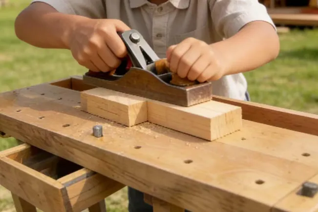 趣味木坊活动,让幼儿近距离感受天然原木的质朴温润,沉浸式体验传统木工乐趣。孩子们在安全指导下亲手体验刨木头,将粗糙木料细心刨平、打磨光滑,感受木料从生硬到细腻的奇妙变化。再通过拼插、组装、装饰,将亲手刨制的木料搭建成为可爱的小木屋。在刨木、搭建的动手实践中,幼儿锻炼手部力量、协调能力与耐心专注力,激发空间想象与创造思维,体会匠心劳作的快乐。一块块原木在巧手中蜕变,一间间小木屋承载童真创意,让孩子们在自然木艺中收获成就感,感受原木之美,乐享巧手天成的趣味时光。
