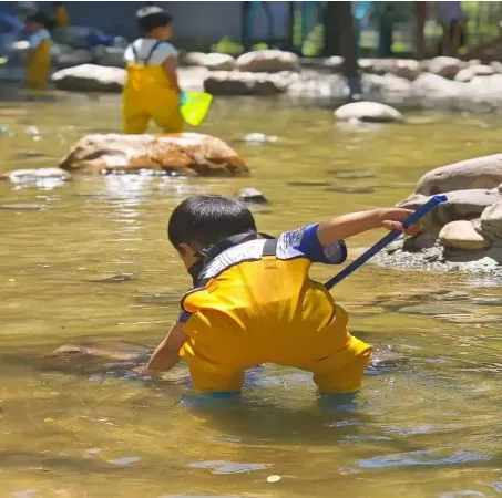 阳光正好,清水潺潺,一场充满野趣的自然探索之旅开始啦!在安全的浅水环境中,孩子们尽情踏水嬉戏,近距离观察、寻找小鱼、小乌龟、小螃蟹、小虾等可爱的水系小动物。孩子们手持小网,轻手轻脚、专注探索,在追逐与捕捉中体验亲近自然的快乐,感受水生小动物的灵动可爱。活动不仅锻炼幼儿的观察力、反应力与动手能力,更让孩子在亲身体验中认识自然、尊重生命,学会温柔对待小动物。一汪清水藏童趣,稚手轻寻乐无穷。让孩子们在嬉水与探索中释放天性,收获快乐与成长,留下一段清凉又难忘的自然回忆。