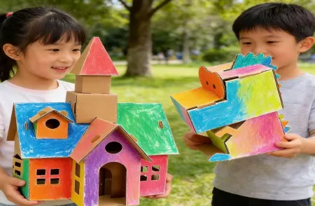 引导幼儿利用纸板进行创意改造,通过拼装、粘贴、涂鸦、装饰等环节,锻炼幼儿手部精细动作、空间感知能力与动手操作能力。鼓励幼儿大胆配色、自主设计,激发想象力、创造力与艺术表现力。体验亲手搭建房子的乐趣,增强自信心、成就感,感受手工创作的快乐。活动亮点:手工拼装+创意涂鸦,一堂课体验多重乐趣,材料安全、步骤简单,适合集体开展,作品独一无二,可带回家摆放,纪念意义强,融合劳动教育、艺术教育,好玩又有意义。