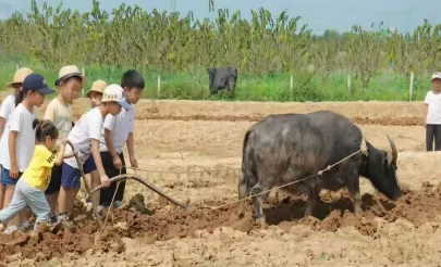 带领幼儿走进田园,开启一场传统农耕文化探索之旅。孩子们近距离认识犁、耙、锄等古老农具,了解其名称与用途,探寻农耕文明的智慧。在安全指导下,孩子们亲身感受牛耕田地的传统劳作场景,体验古法耕种的辛劳与乐趣,直观感受“一粥一饭,当思来处不易”的道理。在观察、体验、实践中,感受传统农耕文化的魅力,培养热爱劳动、珍惜粮食、尊重自然的美好品质。以农具为媒,以耕作为趣,让古老农耕文化在童心间传承,让孩子们在田野里收获知识、快乐与成长。