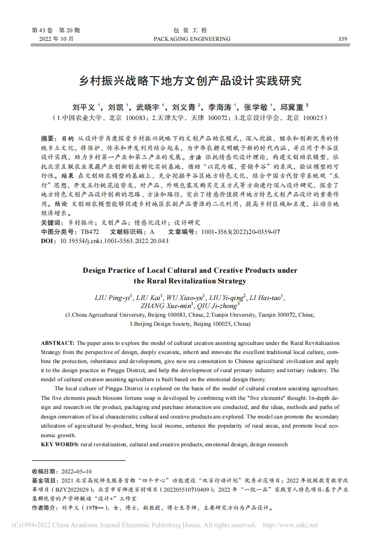 在乡村振兴战略持续推进的背景下,文化产业逐渐成为激活乡村发展活力的重要动力。近年来,国家鼓励挖掘乡村文化资源,推动农文旅融合发展,具有文化内涵和设计价值的乡村文创产品正逐渐成为提升农产品附加值、延伸产业链的重要途径。然而在许多乡村地区,虽然拥有丰富的自然资源和深厚的农耕文化,但普遍存在文化资源挖掘不足、品牌建设薄弱、产品附加值不高等问题,乡村文创产业整体仍处于探索阶段。在此背景下,中国农业大学依托学科优势和乡村实践平台,组织师生团队深入乡村开展调研与设计实践,通过文化资源挖掘、品牌设计和文创产品开发,探索形成了“设计+”赋能乡村文创产业培育的实践模式。