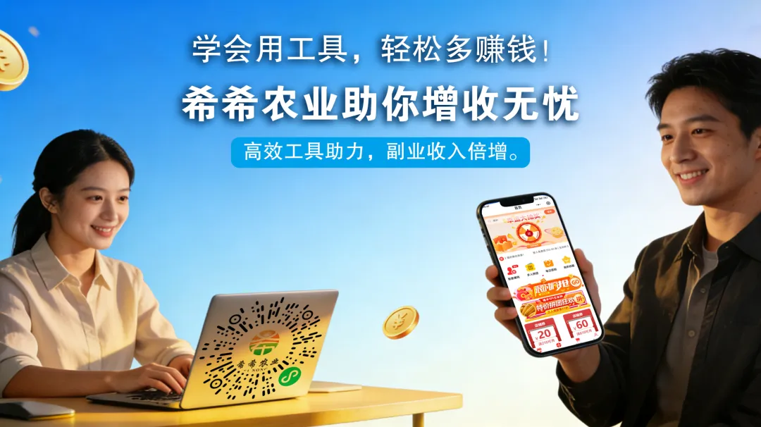 现在就打开【希希农业】小程序,点“我要赚钱”,30秒生成你的专属码,发出去就有机会赚钱!