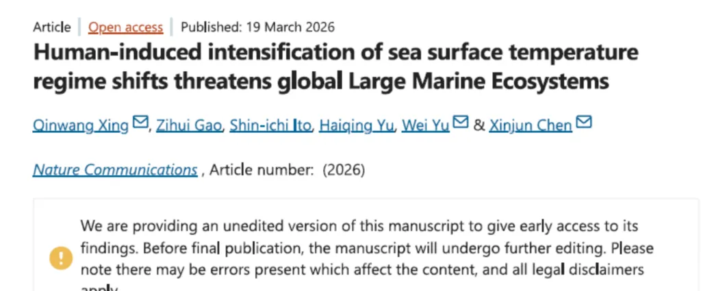 上海海洋大学团队在国际权威期刊Nature Communications 刊文 揭示海洋温度跃变演化规律及生态渔业影响