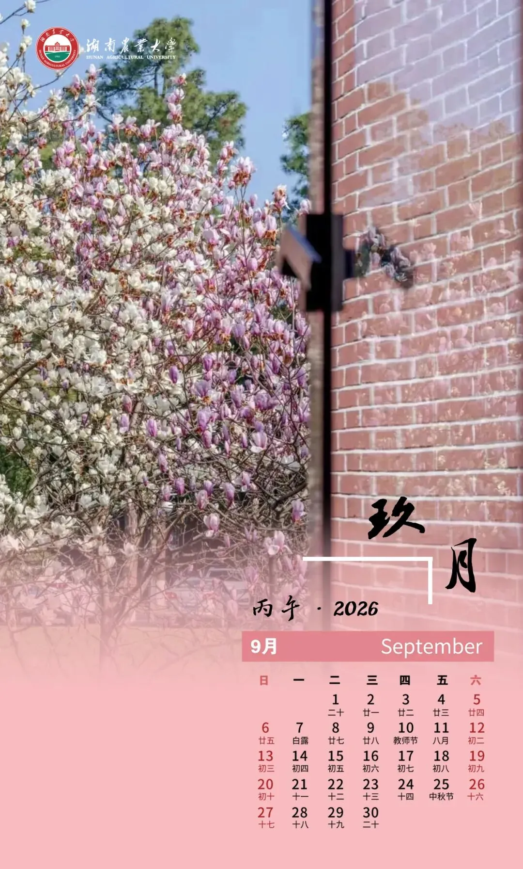 【湖南农业大学】送你一份农大日历,一起云览花开校园