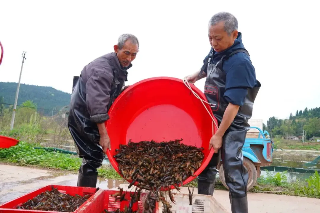 据悉,自2023年起,船山区将稻渔综合种养作为保障粮食安全、促进农民增收的关键抓手,全力推进“鱼米之乡”项目建设。目前,船山区已发展高标准稻渔共生基地上万亩,小龙虾养殖面积近9000亩。小小龙虾,不仅做成了年产值近4000万元的大产业,更盘活了土地,富裕了乡亲。一只只活蹦乱跳的小龙虾,正成为驱动船山区乡村振兴、绘就共同富裕新图景的强大活力。