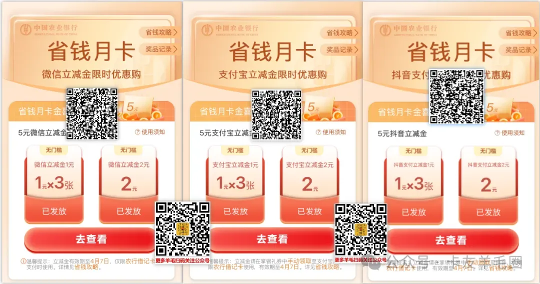 一;农行省钱月卡15元立减金
