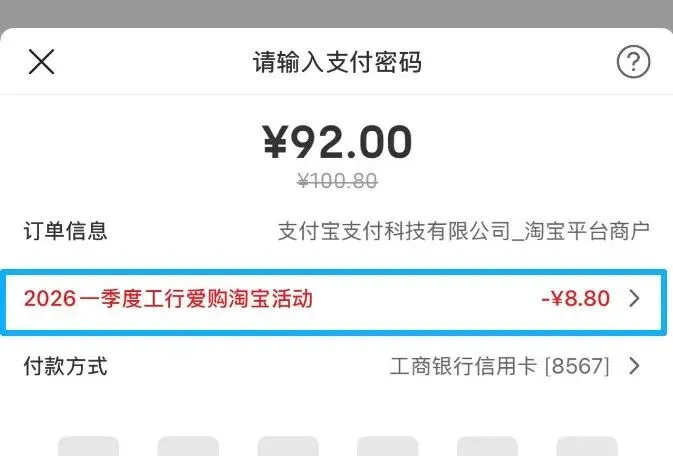 需要有工行信用卡,就是之前淘宝一直发的88-8.8