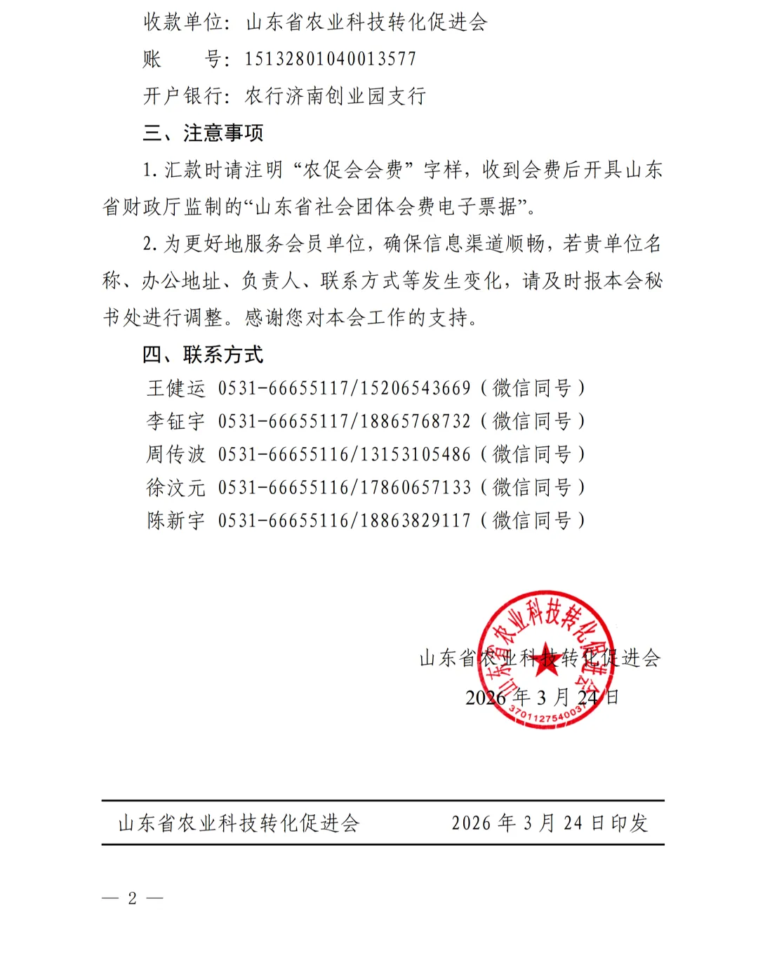 附件:鲁农技转字8号 关于缴纳山东省农业科技转化促进会2026年度会费的通知.pdf
